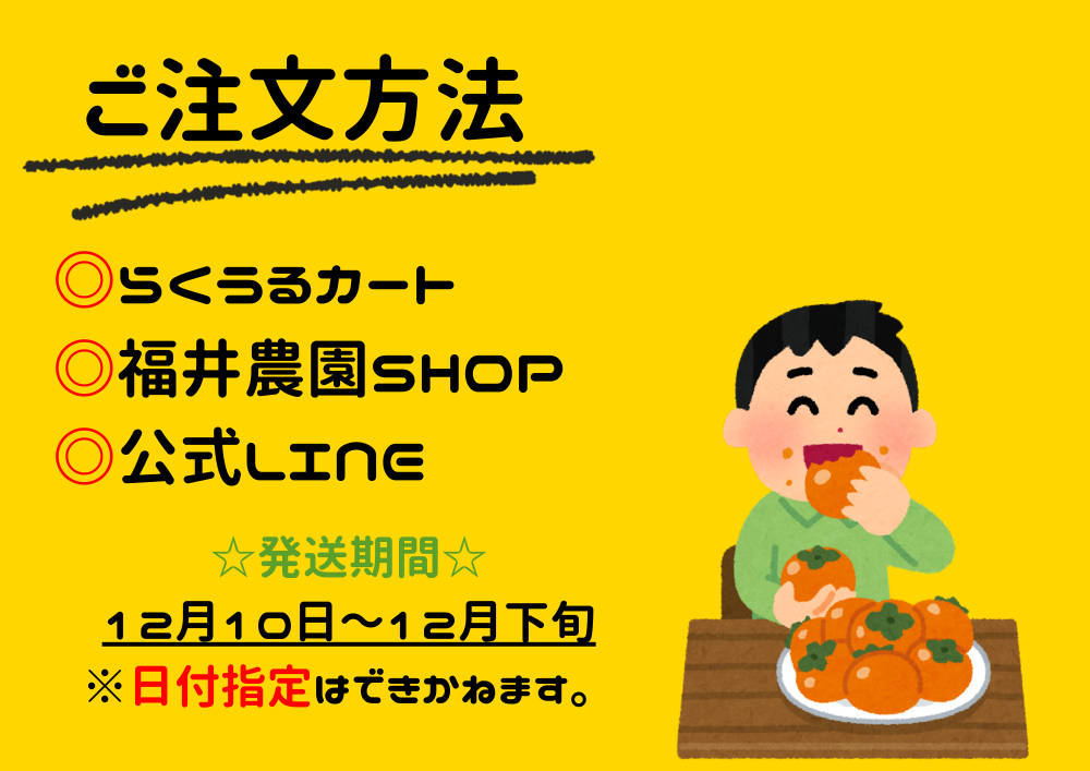 ✨📢お知らせ📢✨12月10日より今年もご注文ありがとうセール実施いたします!!!!※10日までは通常料金になります⚠️ぜひこの機会に福井農園の富有柿をお試しください🤤🌳らくうるカートもしくは福井農園SHOPよりご注文お願いいたします🤲💞福井農園